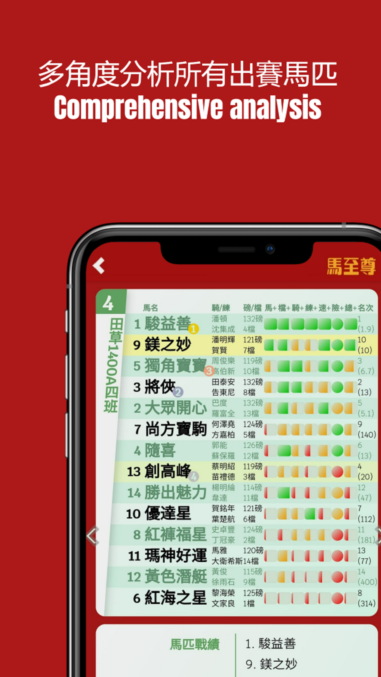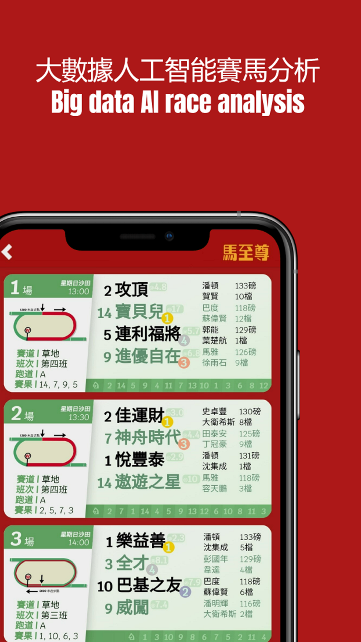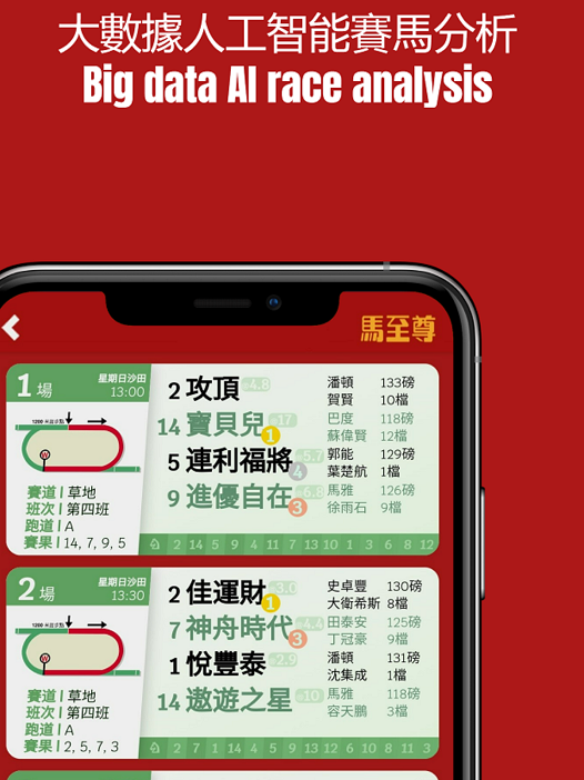 馬至尊利用尖端大數據人工智能分析每場馬匹、騎師、練馬師、檔位等相對分類指數,風險評估以及個別賽道排名,而計算出每場的重點馬匹。